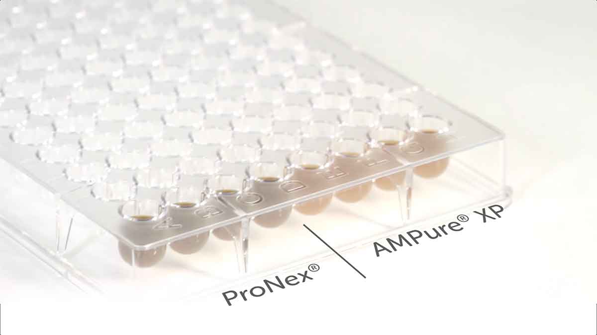 The ProNex® Size-Selective Purification System enables the rapid and efficient magnetic resin-based purification of double-stranded DNA (dsDNA) for next-generation sequencing (NGS), polymerase chain reaction (PCR) and general molecular biology applications. The ProNex® System allows users to select the desired size of purified dsDNA fragments, from 100bp to 750bp. The novel reagent formulation provides significantly improved selectivity, reproducibility and yield relative to traditional dsDNA purification methods. In addition, the ProNex® System can be used in both manual and automated high-throughput workflows.